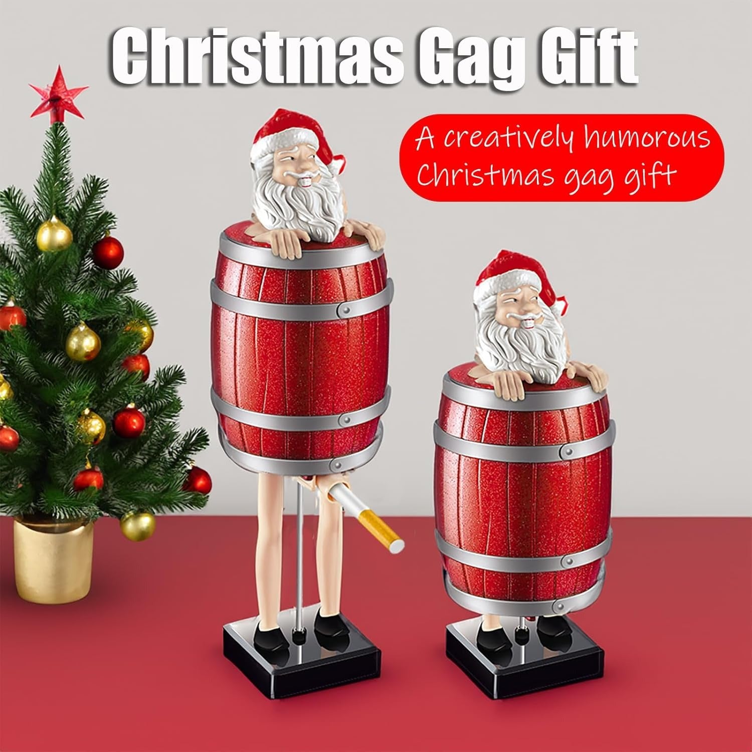 🎅 Design unic – Moșul simpatic ascuns într-un butoi roșu sclipitor